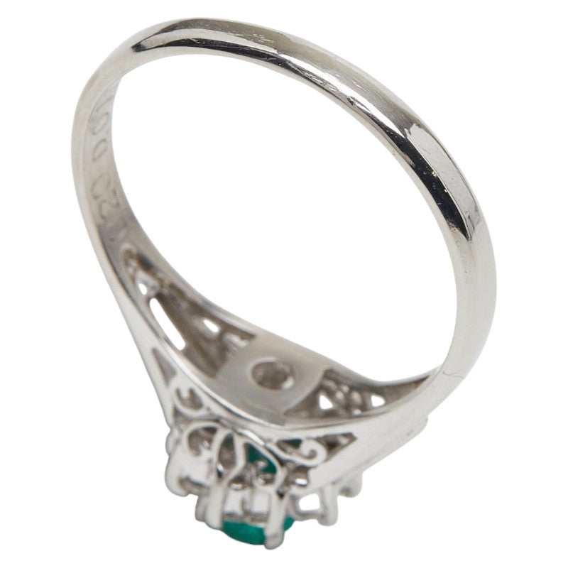 Pt900 Platinum Emerald Diamond Flower Motif Ring