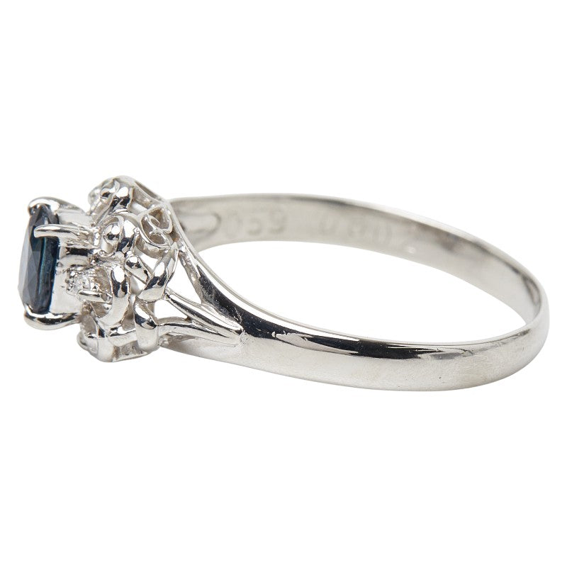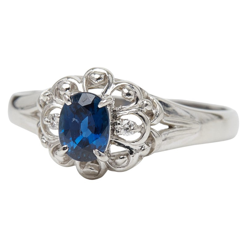 Pt900 Platinum Sapphire Diamond Flower Motif Ring