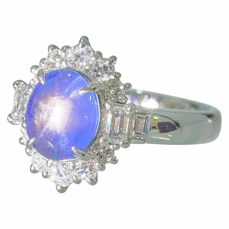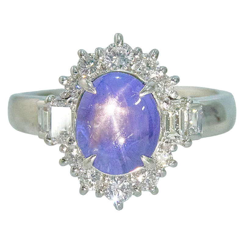 Pt900 Platinum Star Sapphire Diamond Ring