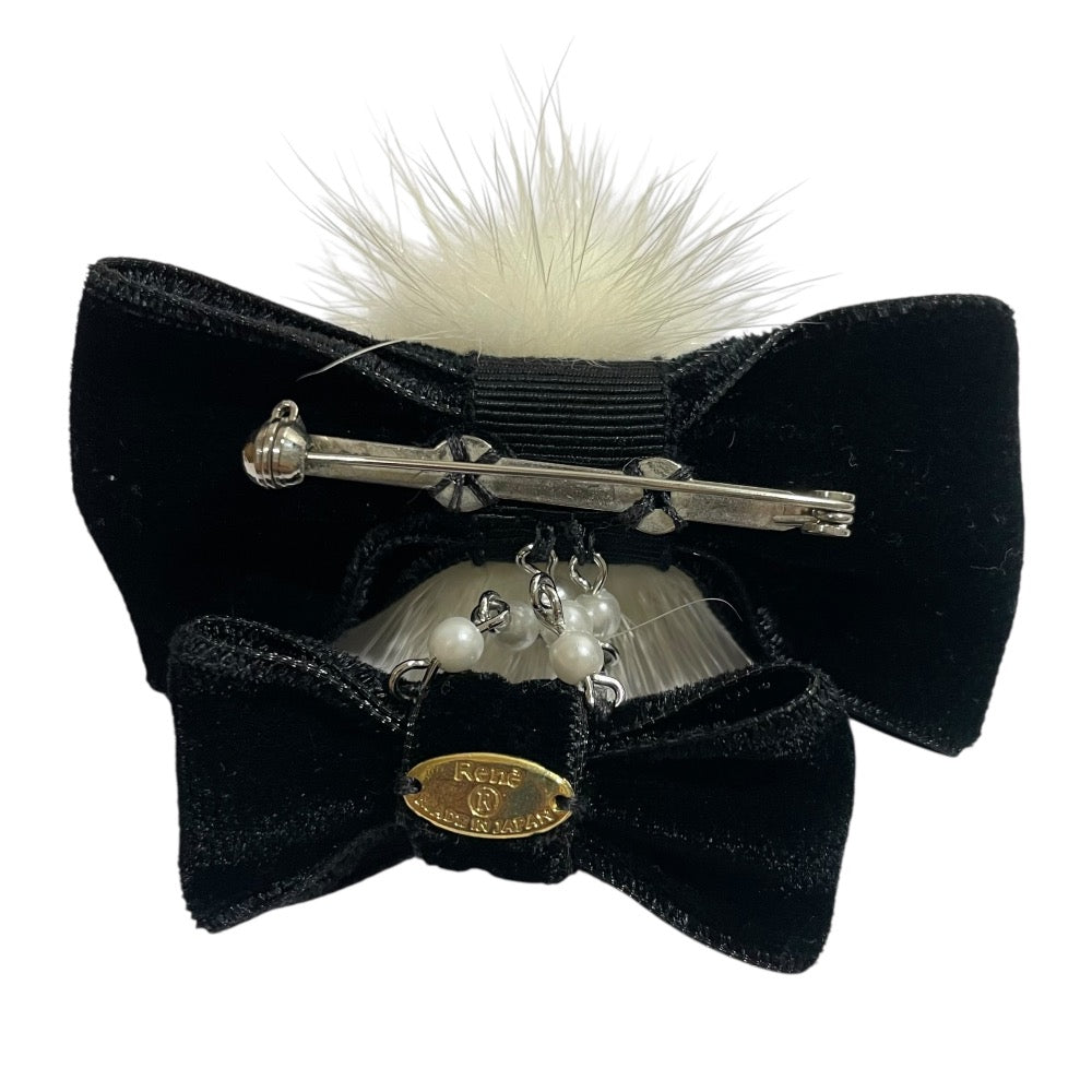 Rene Velvet Faux Pearl Mink Fur Ribbon Brooch