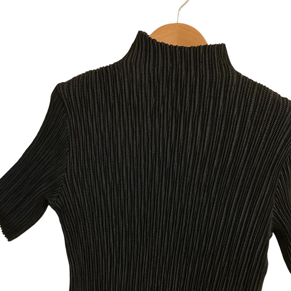Specchio High Neck Pleated Short Sleeve Top