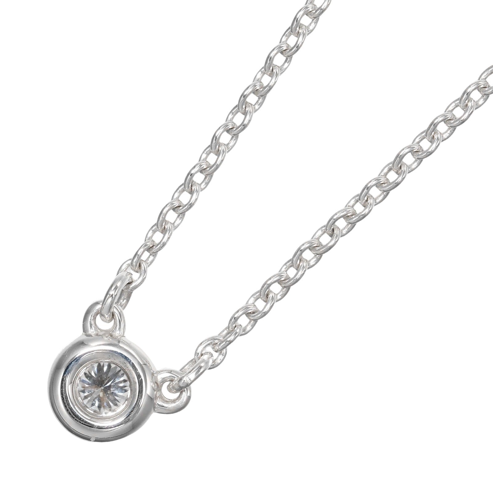 **Elevate Your Everyday Elegance.** Discover the timeless allure of the Tiffany & Co. By the Yard Diamond Necklace. Crafted in radiant sterling silver, this delicate piece features a subtly shimmering diamond, adding a touch of understated luxury to any ensemble. Perfect for layering or wearing solo, this necklace effortlessly transitions from day to night, complementing both casual and sophisticated styles. A versatile and essential addition to your jewelry collection, this necklace will quickly become your go-to piece for adding a hint of sparkle to your everyday life. Experience the enduring quality and design of Tiffany & Co., and let this By the Yard necklace be a reflection of your own radiant spirit.
