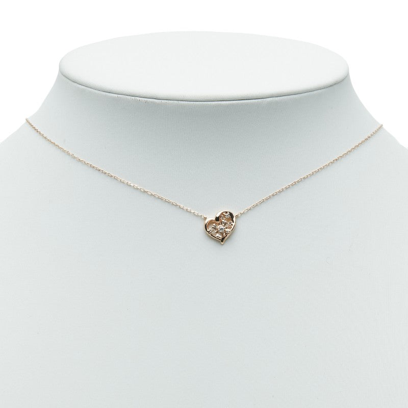 4℃ K10PG Diamond Heart Flower Pendant Necklace
