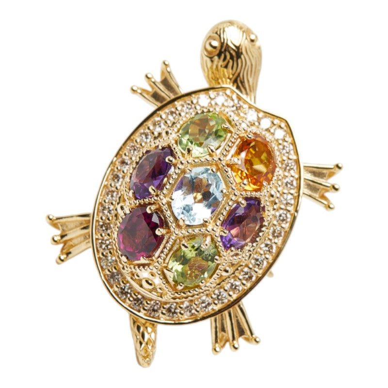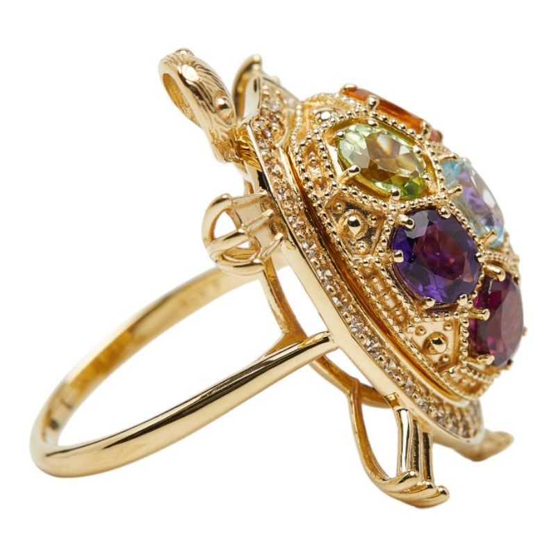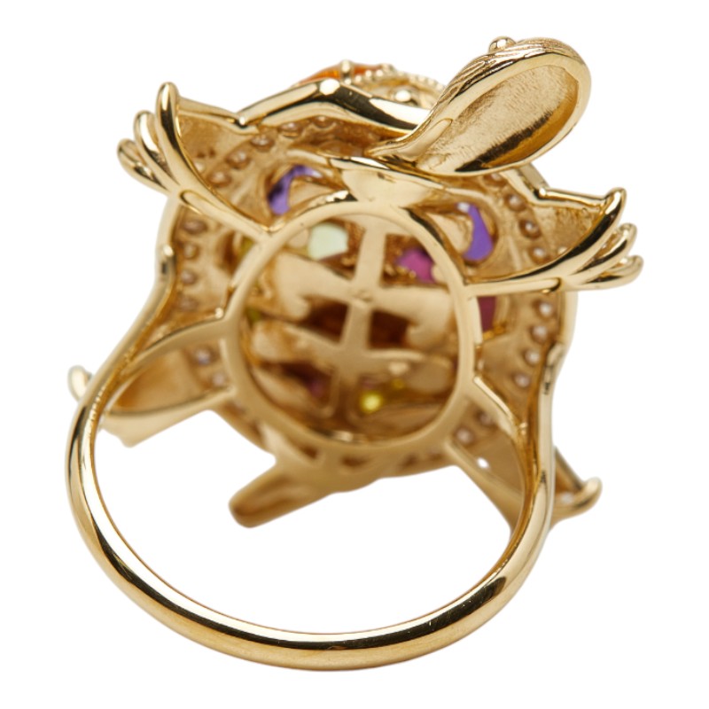 Au750 Multi Gemstone Diamond Turtle Motif Ring