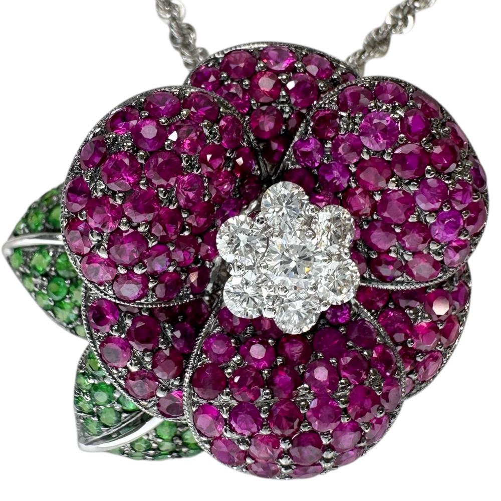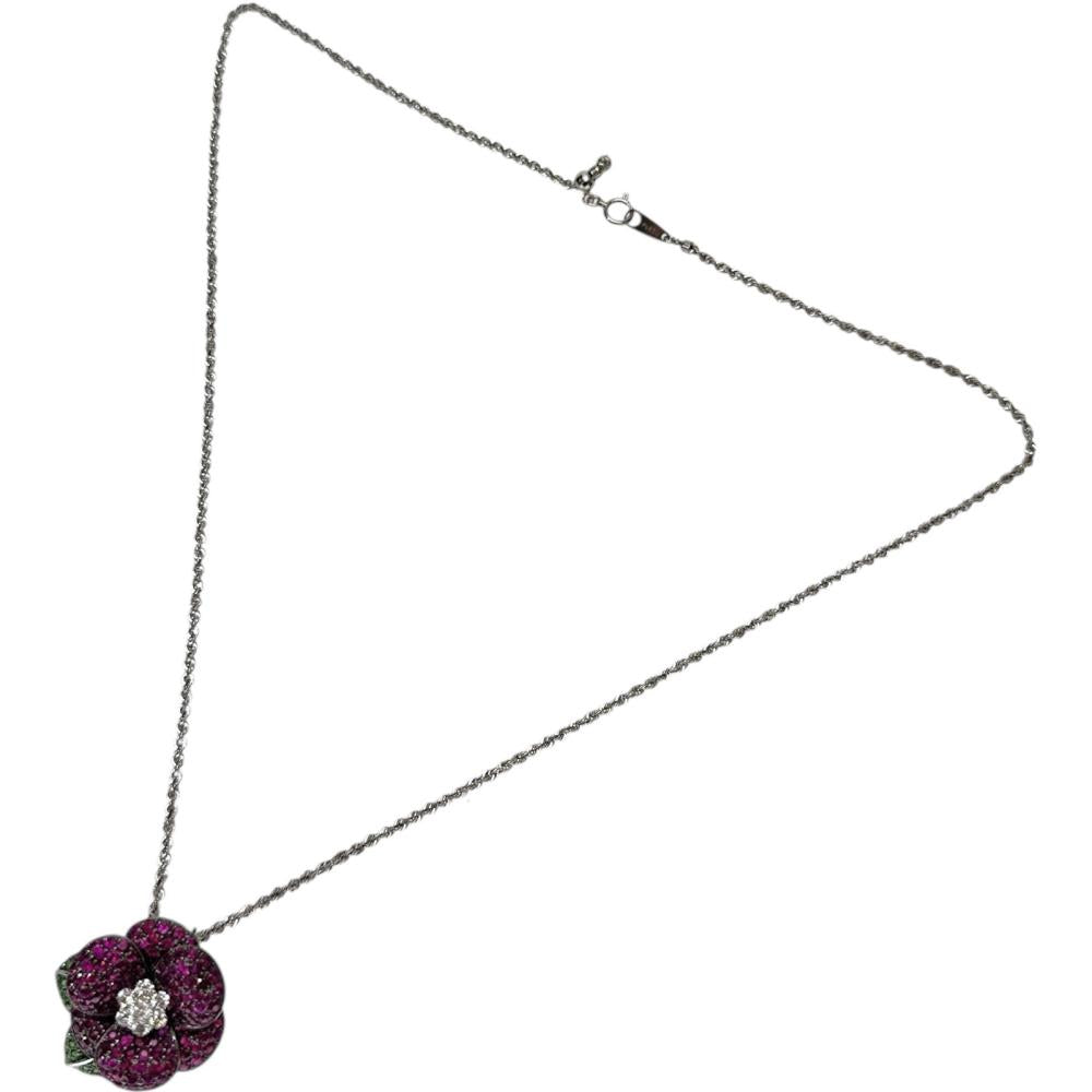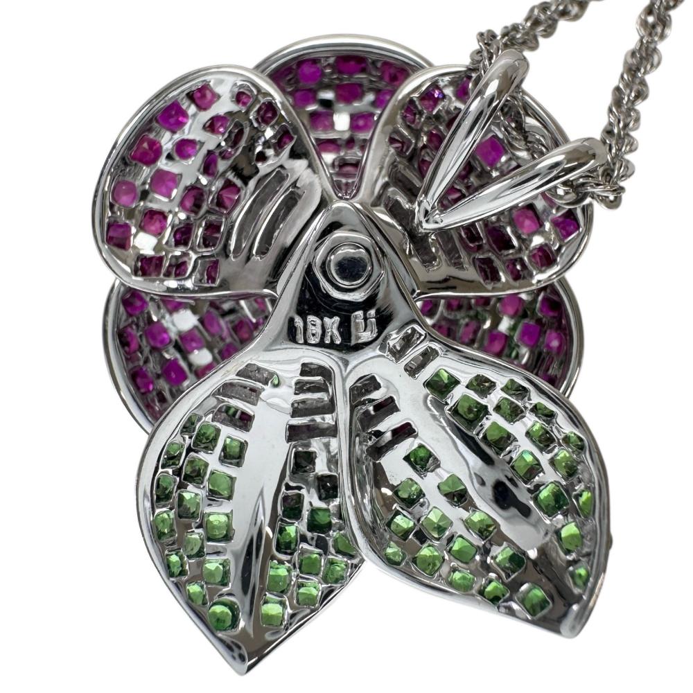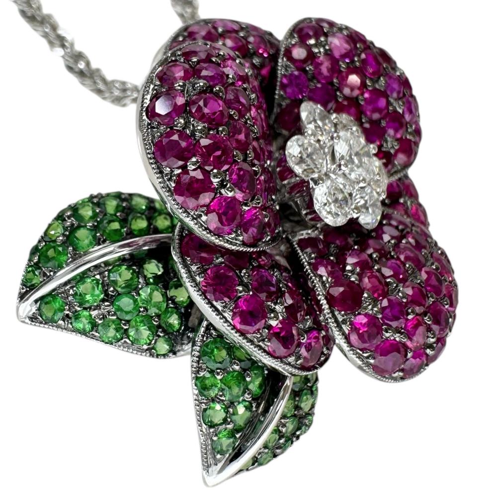 Au750 White Gold Pt850 Platinum Ruby Green Grossular Garnet Diamond Necklace