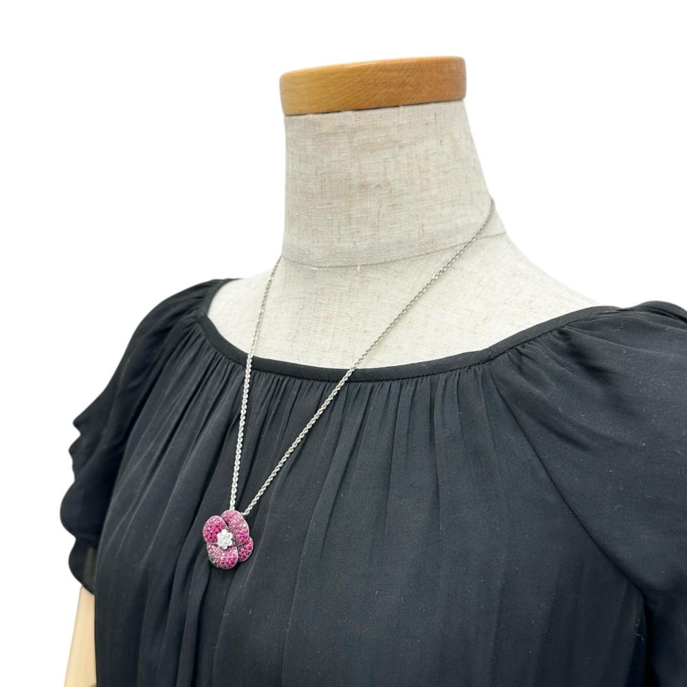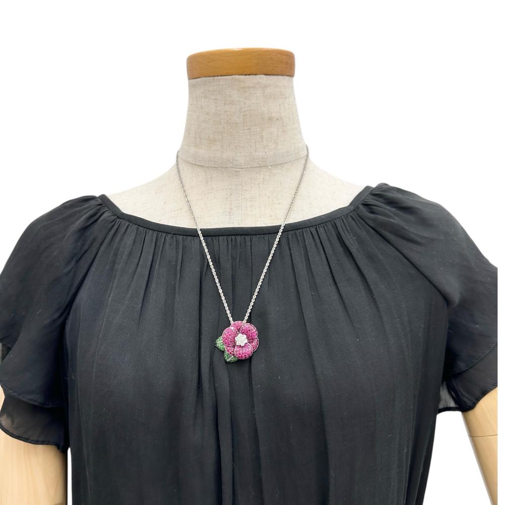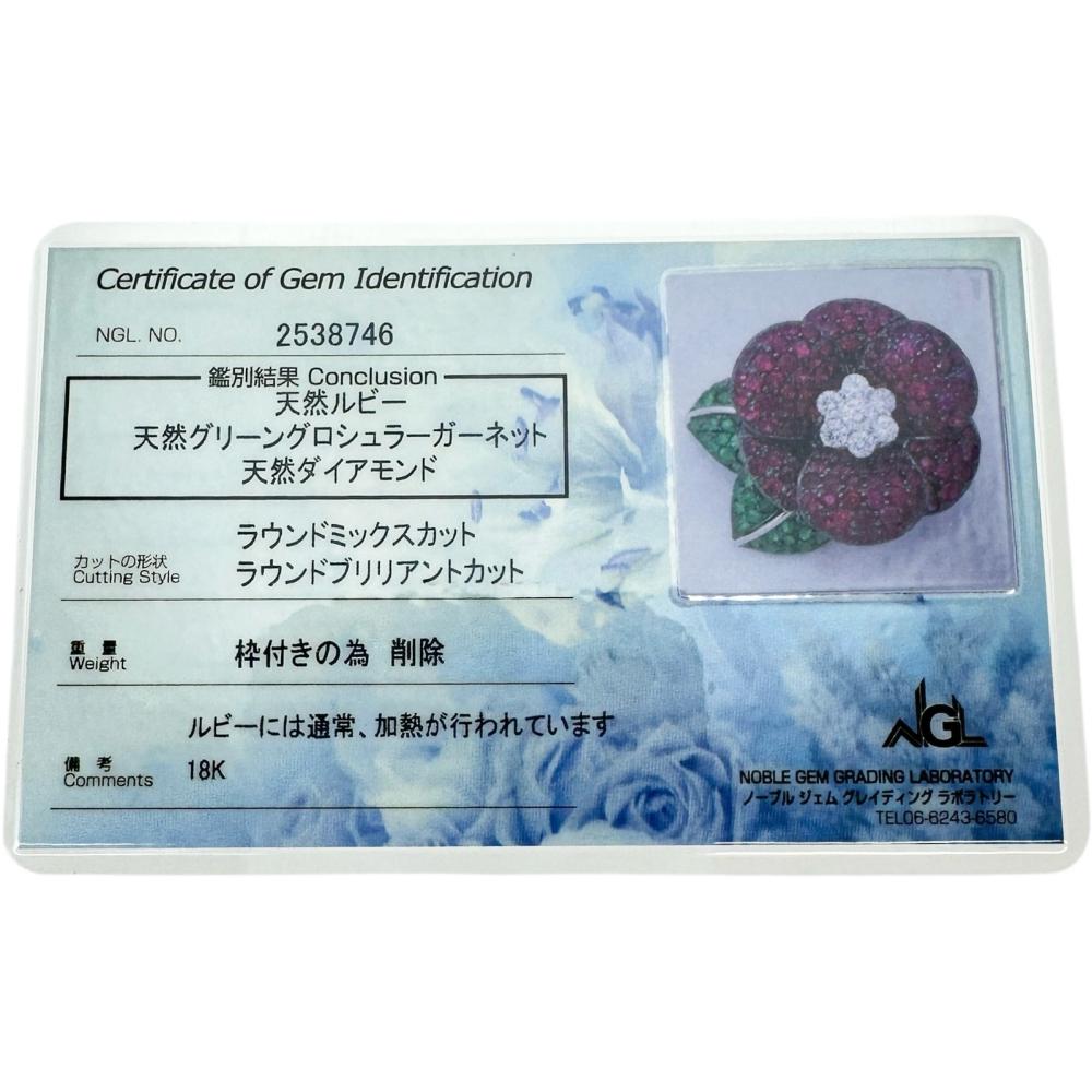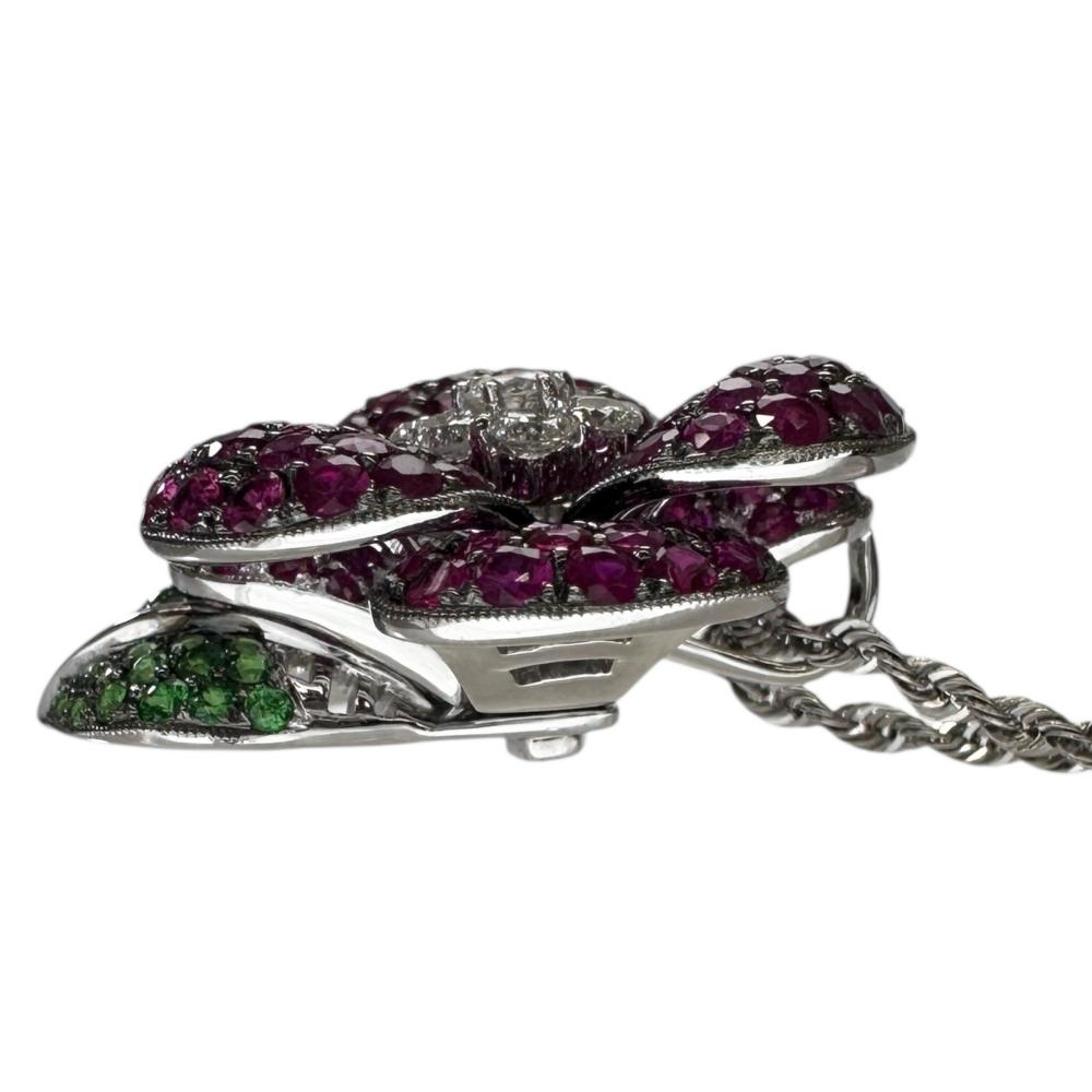 Au750 White Gold Pt850 Platinum Ruby Green Grossular Garnet Diamond Necklace