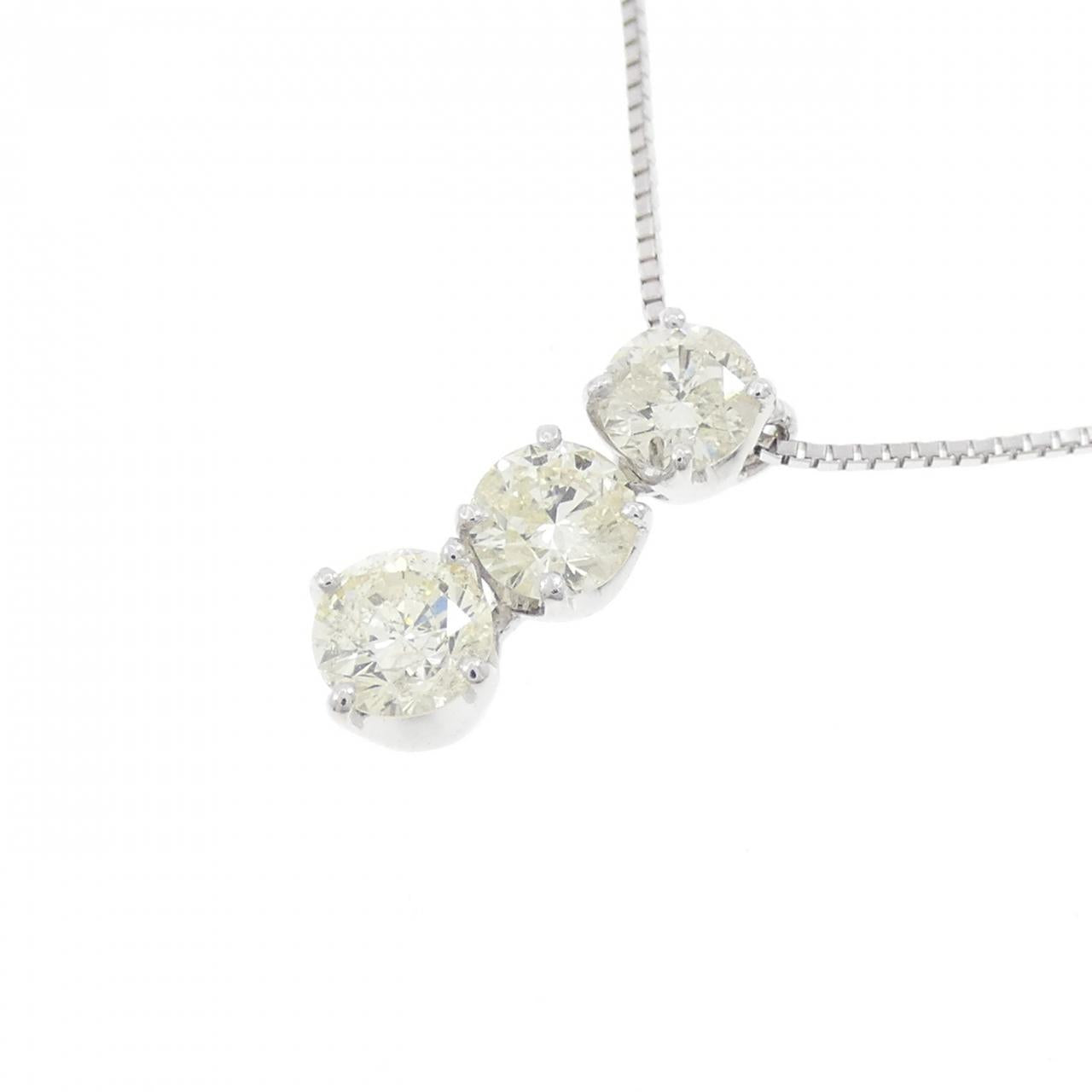 Au750 White Gold Three Stone Diamond Necklace