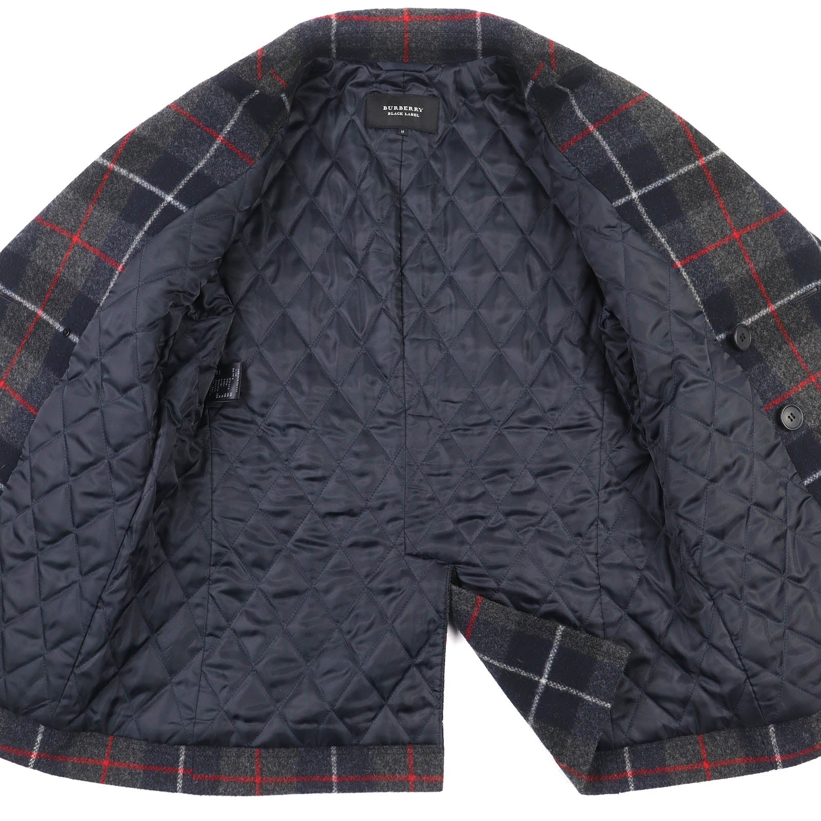 Burberry Black Label Check Pattern Logo Button Wool Coat