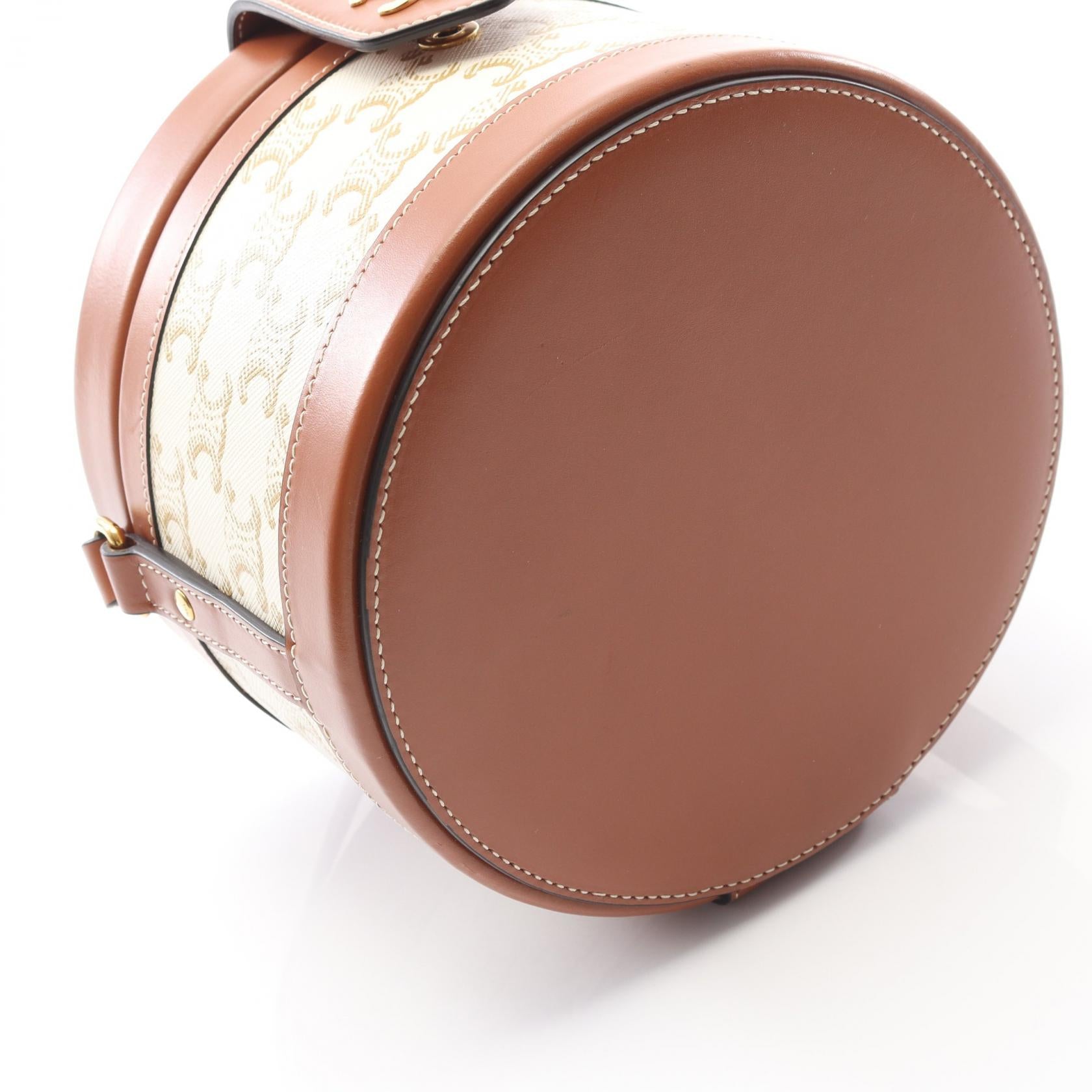 Indulge in timeless elegance with the Celine Tambour Triomphe bag. Crafted for the discerning woman, this chic shoulder bag seamlessly blends practicality and luxury. Its iconic design and durable canvas construction make it perfect for everyday adventures, adding a touch of sophistication to your effortless style. A must-have accessory for the modern woman.