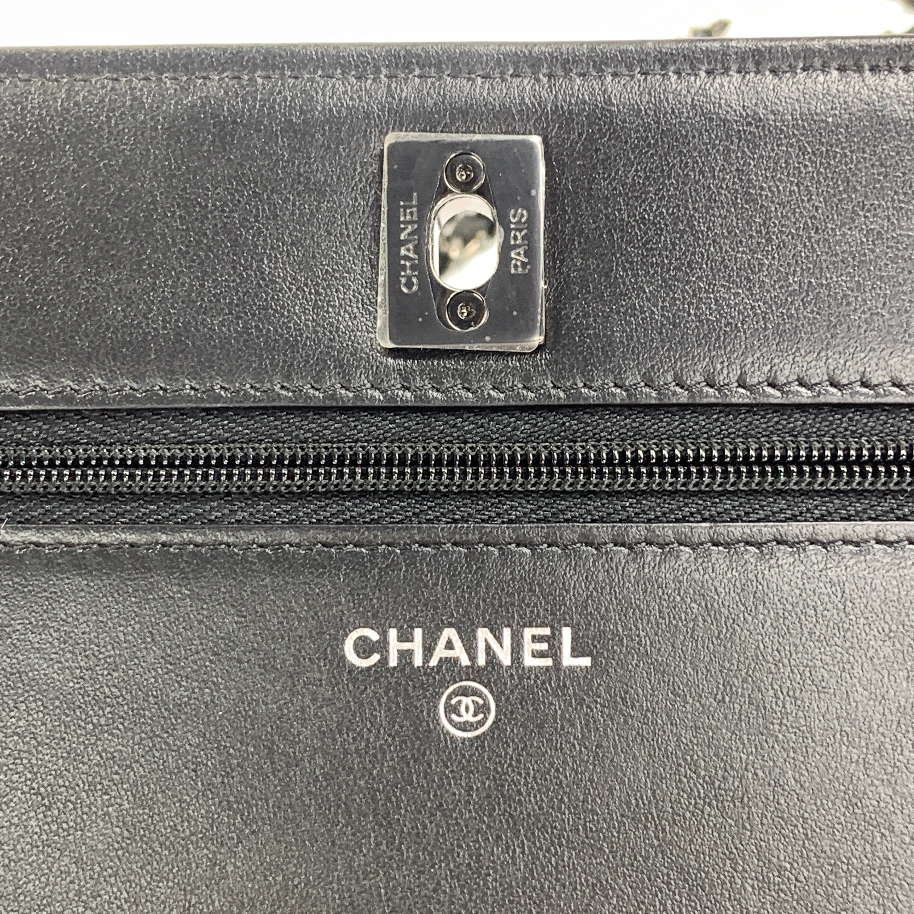 Indulge in timeless elegance with the Chanel CC Flap Card Holder on Chain. Crafted for the discerning woman, this chic accessory effortlessly elevates your everyday style. The dazzling strass detailing adds a touch of luxury, while the chain allows for versatile wear. Perfect for keeping your essentials close at hand, this bag is the epitome of practical sophistication.