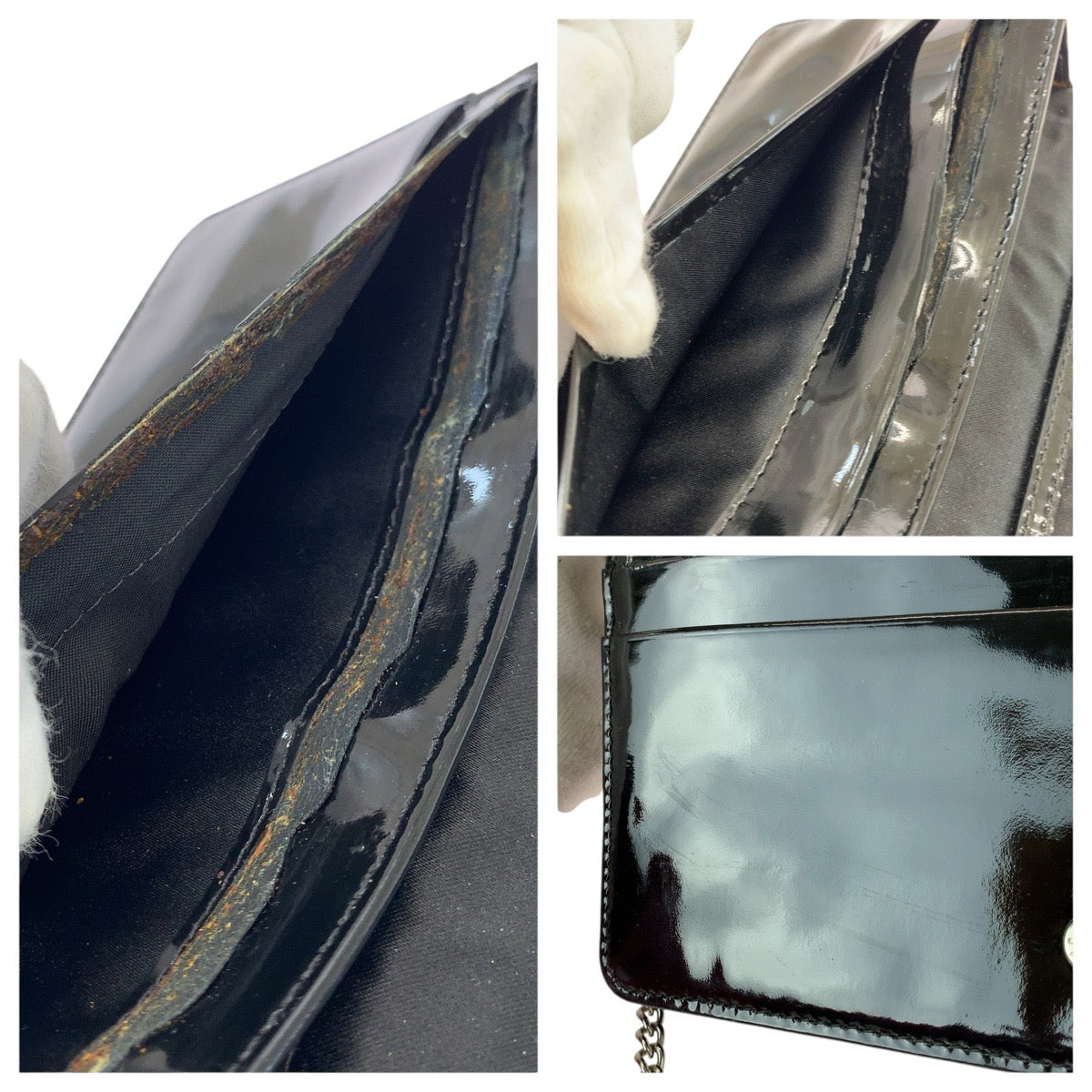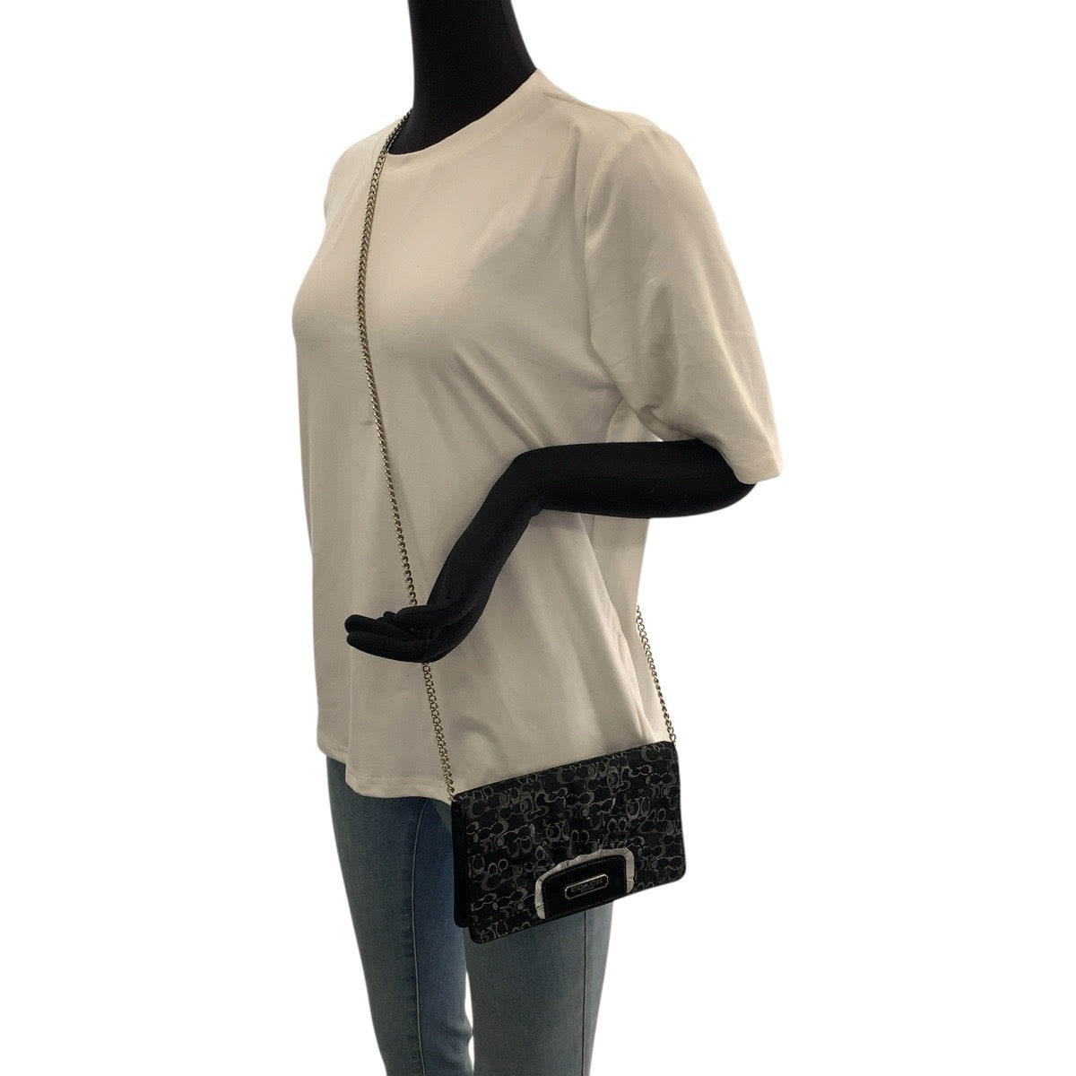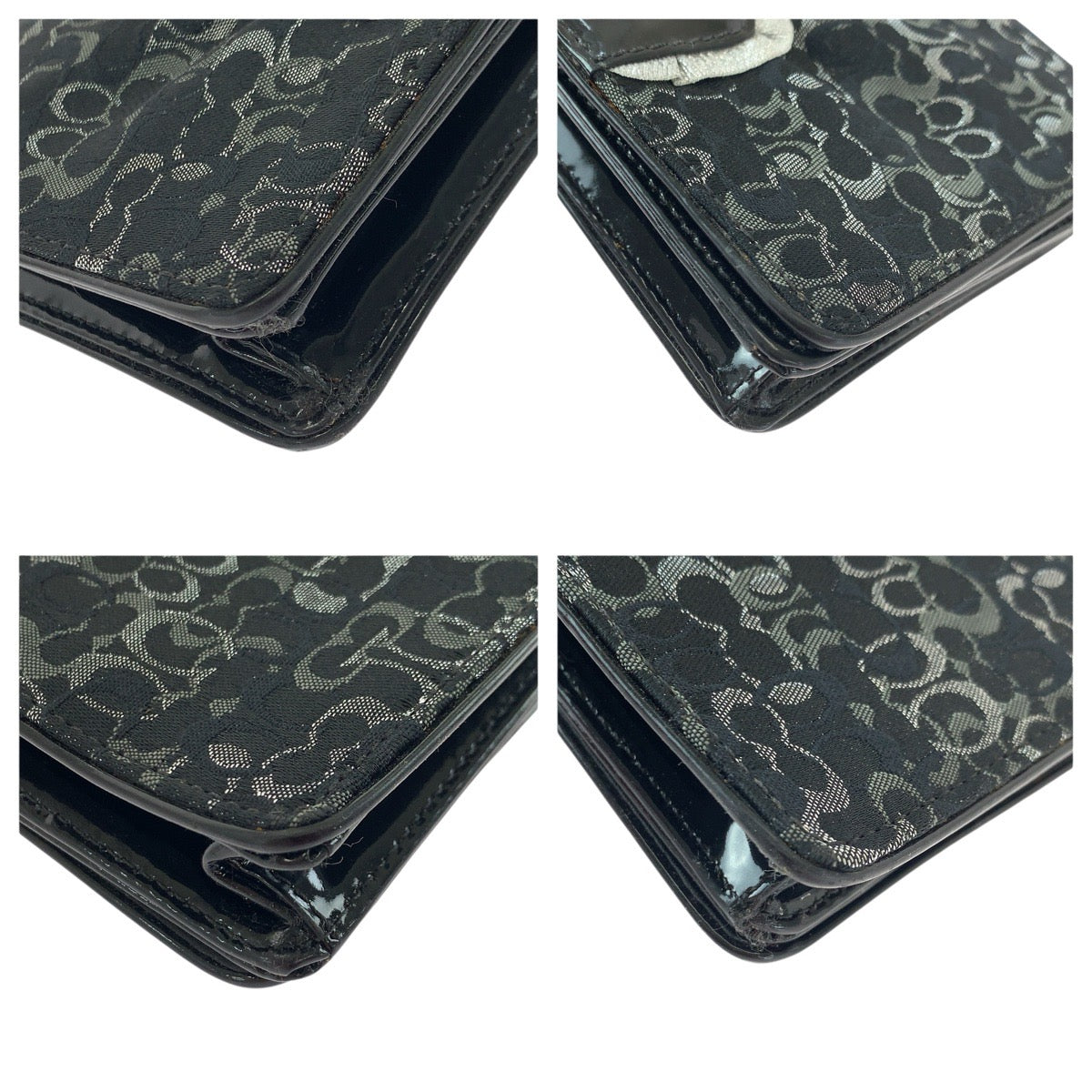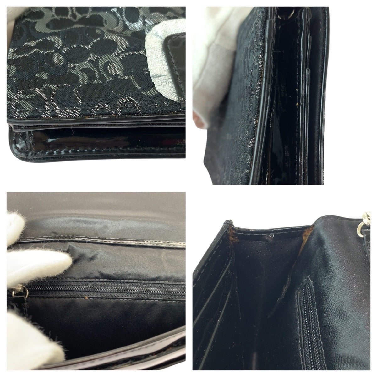 COACH Signature Canvas Patent Leather Chain Shoulder Bag