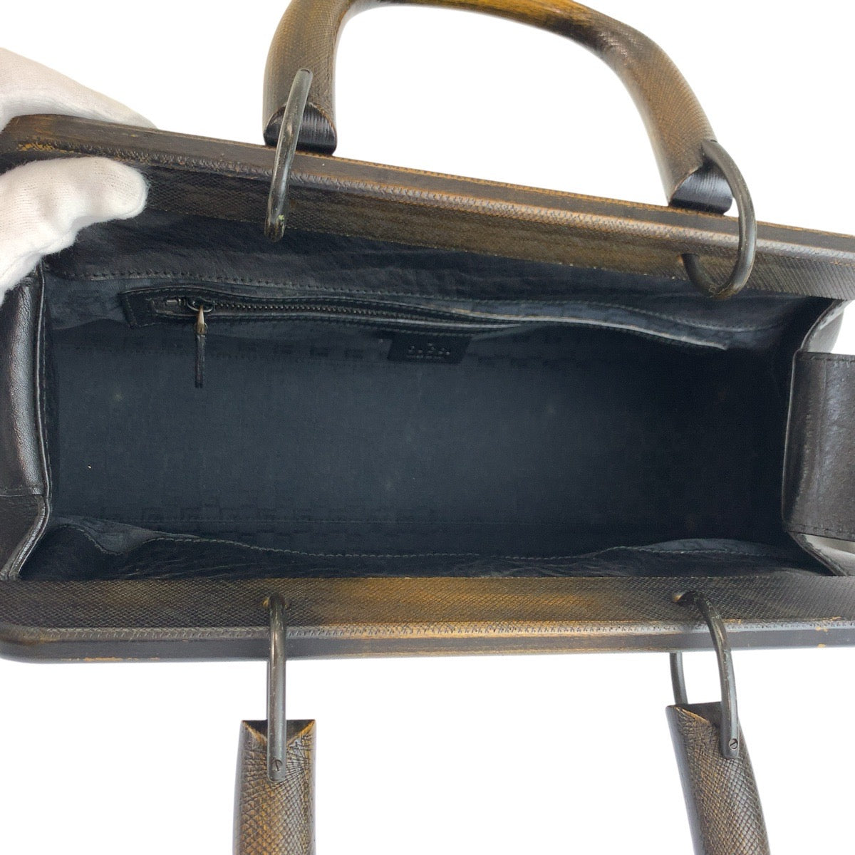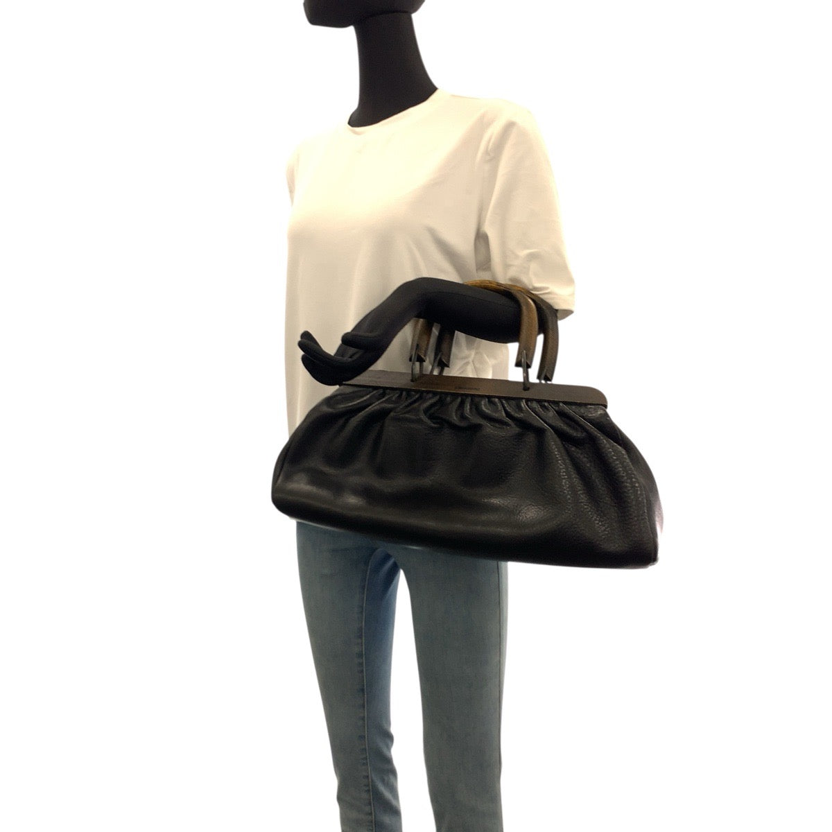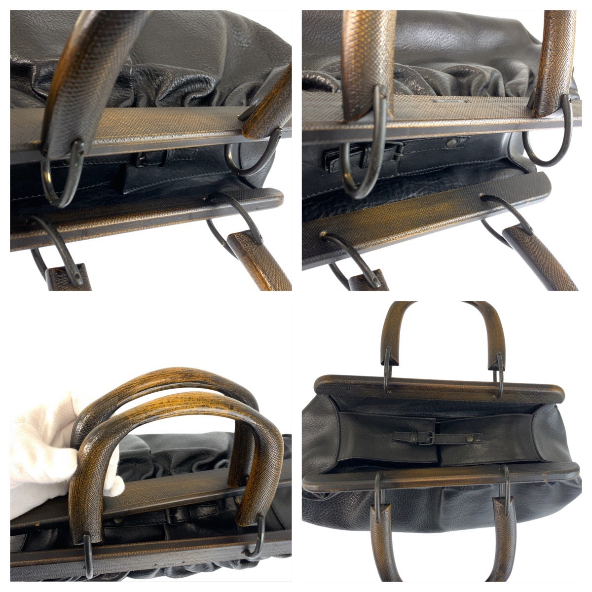 Gucci Wood Handle Leather Wood Handbag