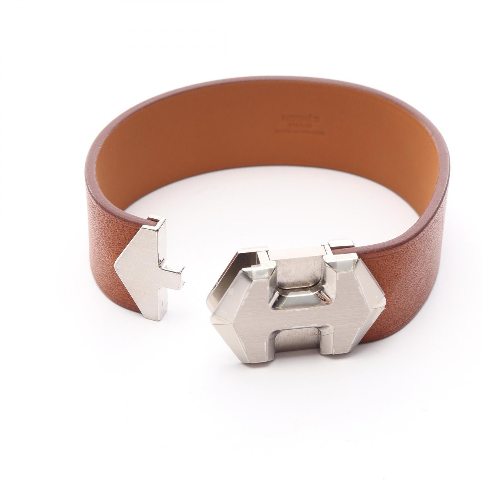 Hermes Super H Stainless Steel Leather Bangle