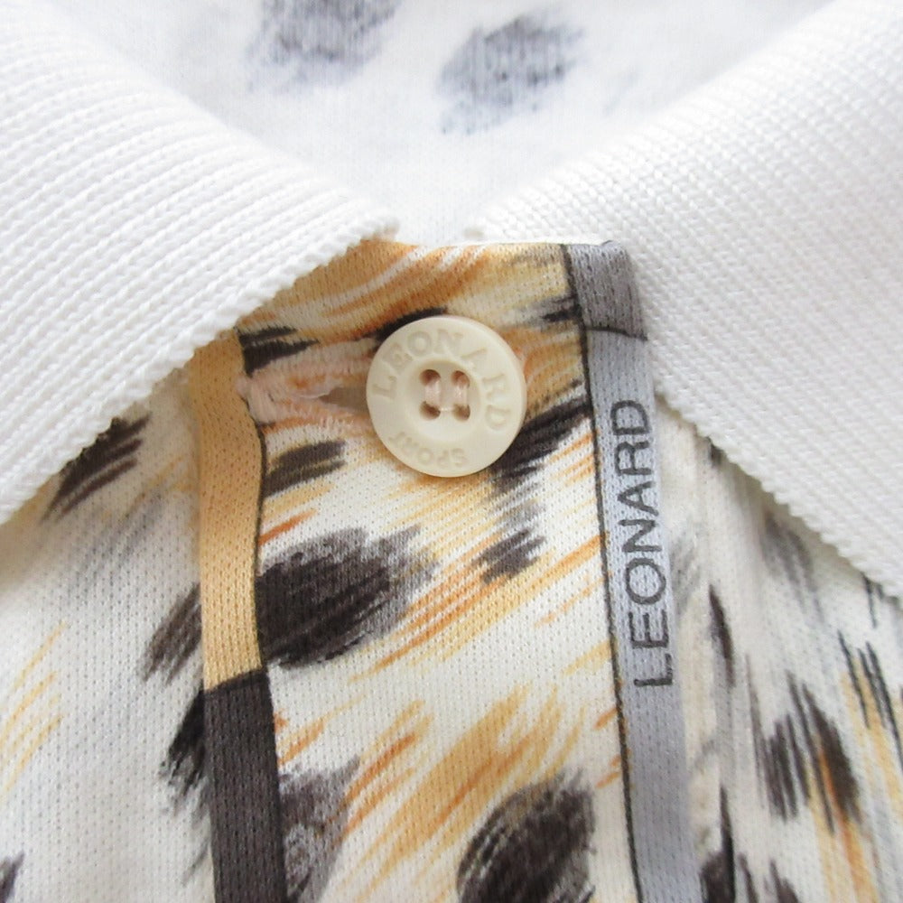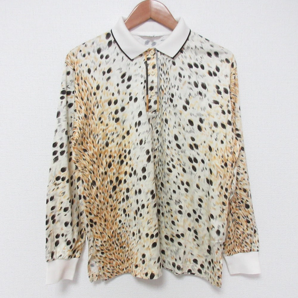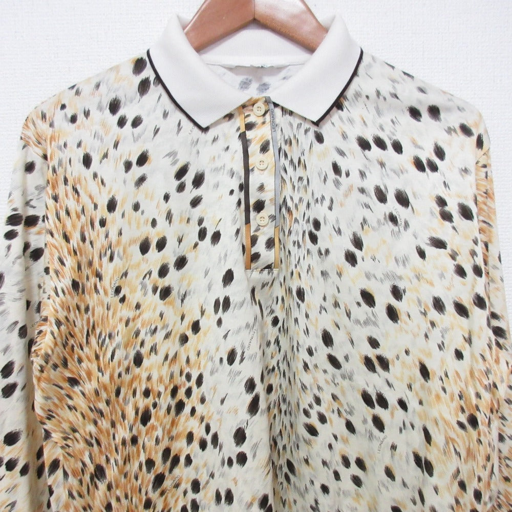 LEONARD SPORT Leopard Print Long Sleeve Polo Shirt
