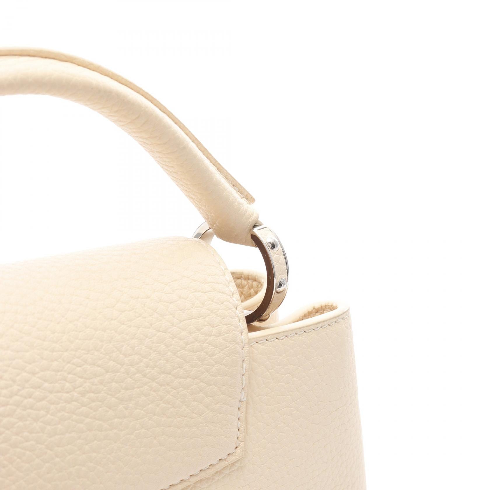 Indulge in timeless elegance with the Louis Vuitton Capucines BB. Crafted from luxurious Taurillon leather, this versatile 2way bag seamlessly transitions from day to evening. Its refined design and practical size make it the perfect everyday companion for the discerning woman who appreciates quality and understated sophistication. Carry it by the top handle or wear it crossbody for effortless chic.