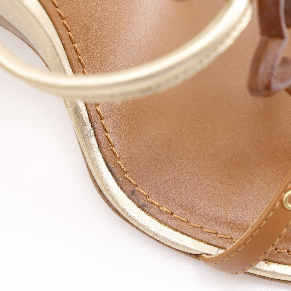 Louis Vuitton Monogram Flower Leather Wood Wedge Sandals