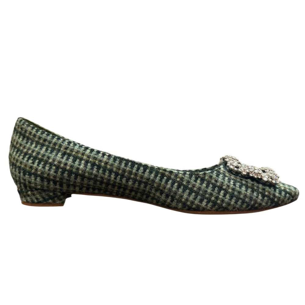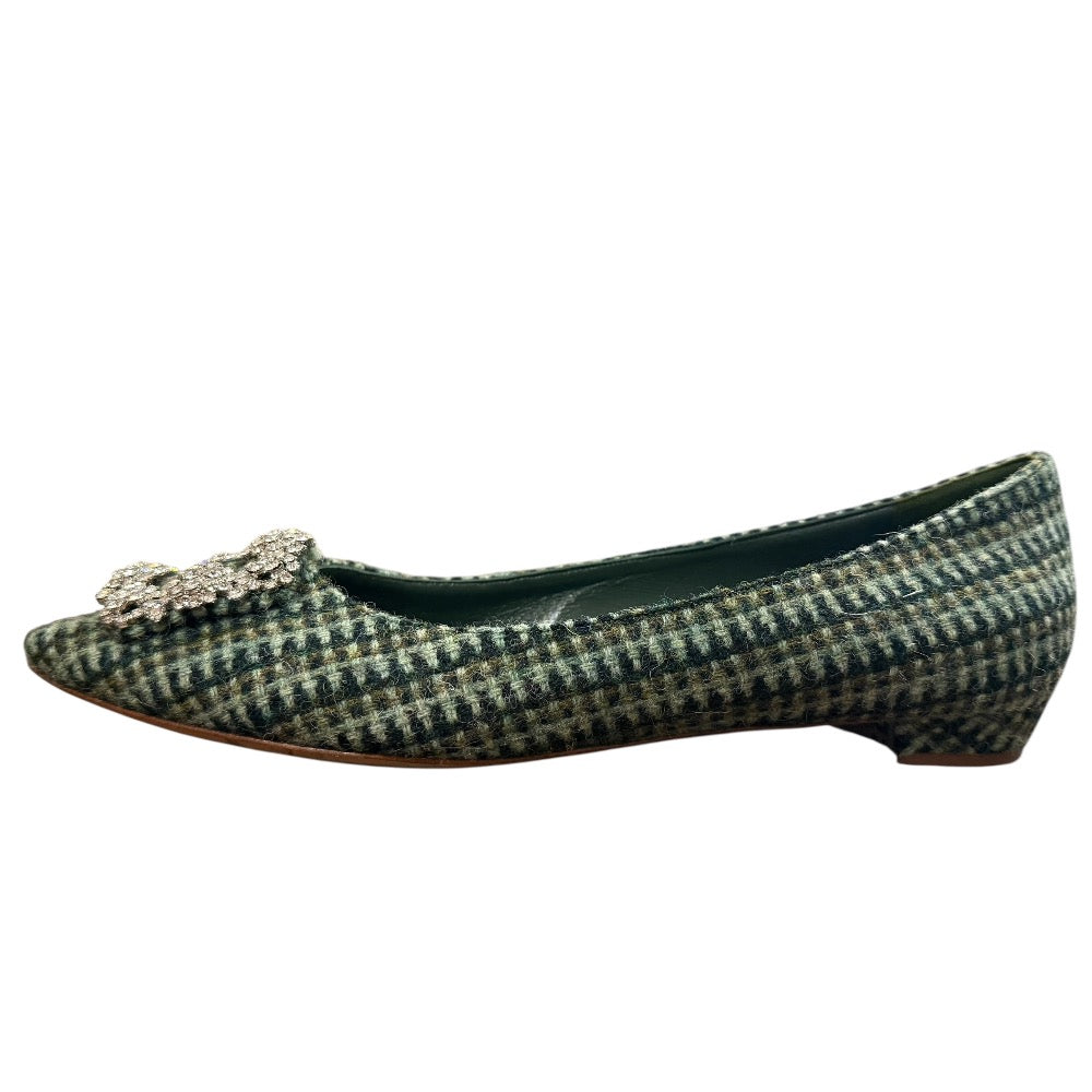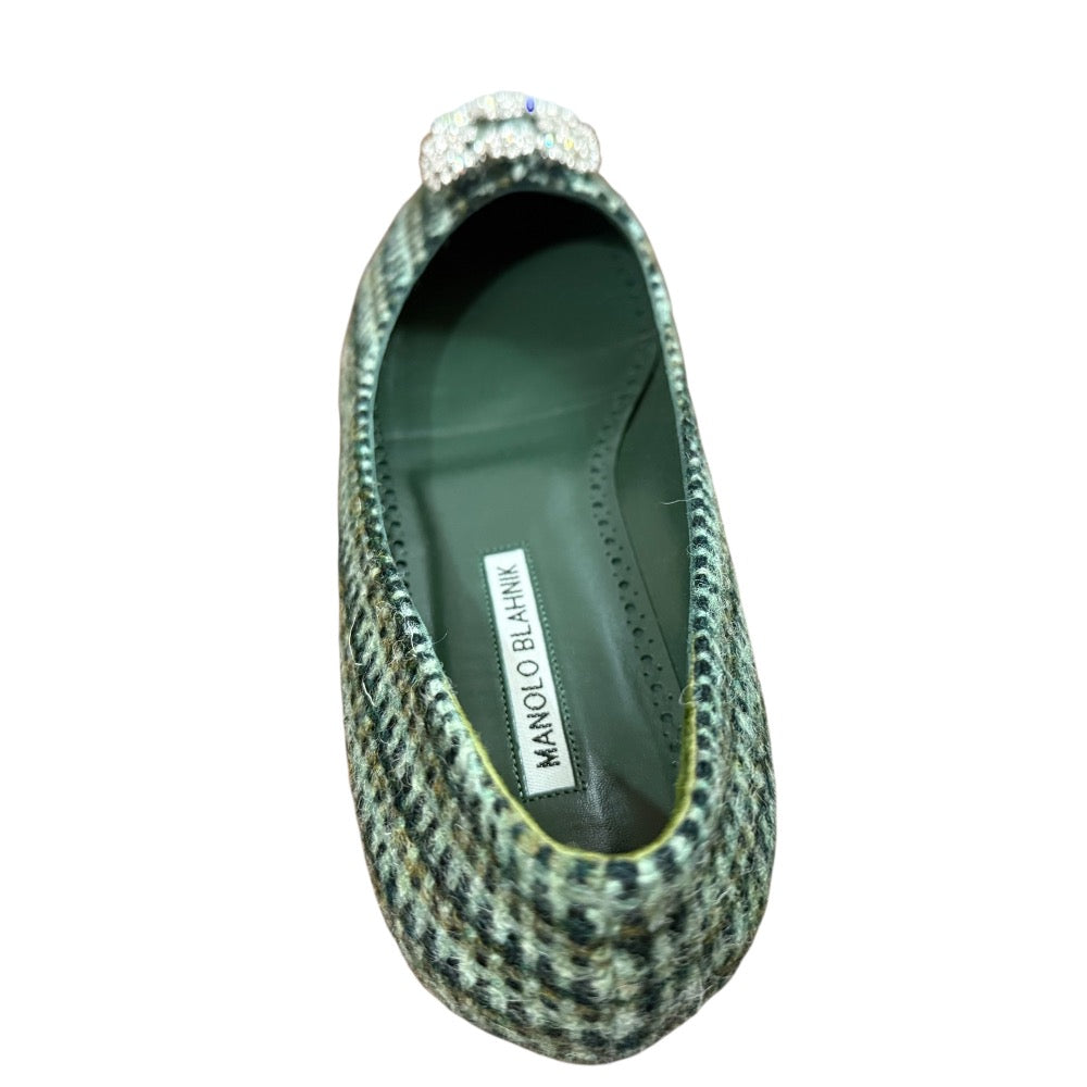 Manolo Blahnik Hangisi Tweed Flat Shoes