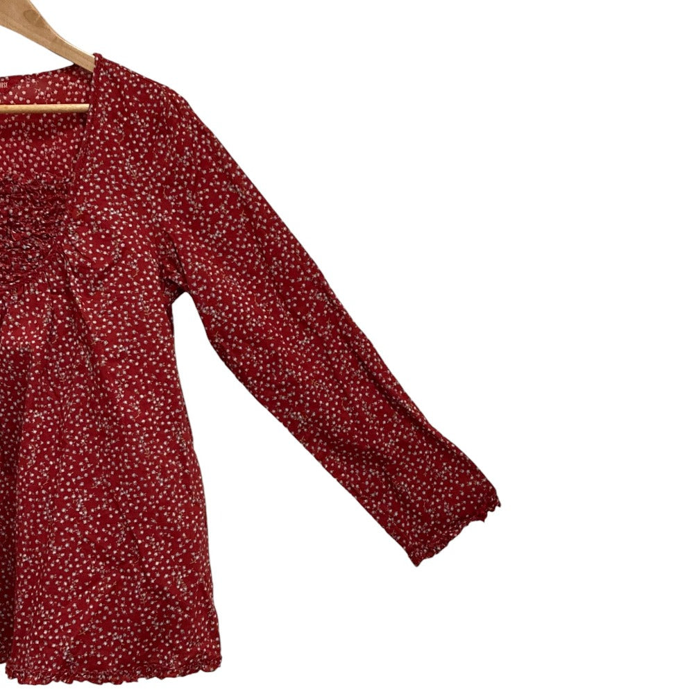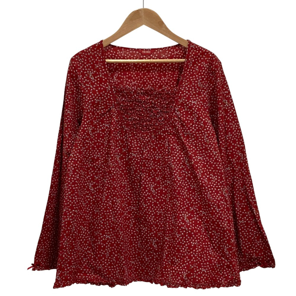 PINK HOUSE Flower Print Frill Long Sleeve Blouse