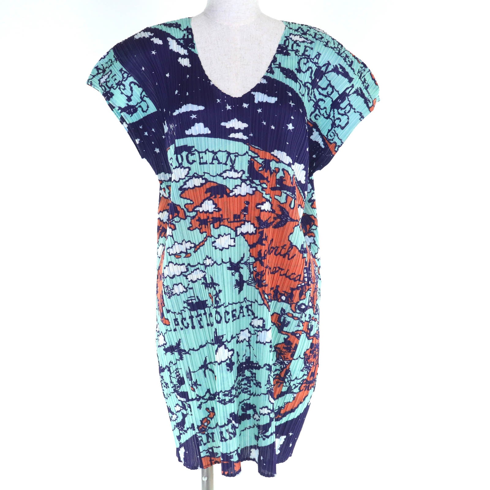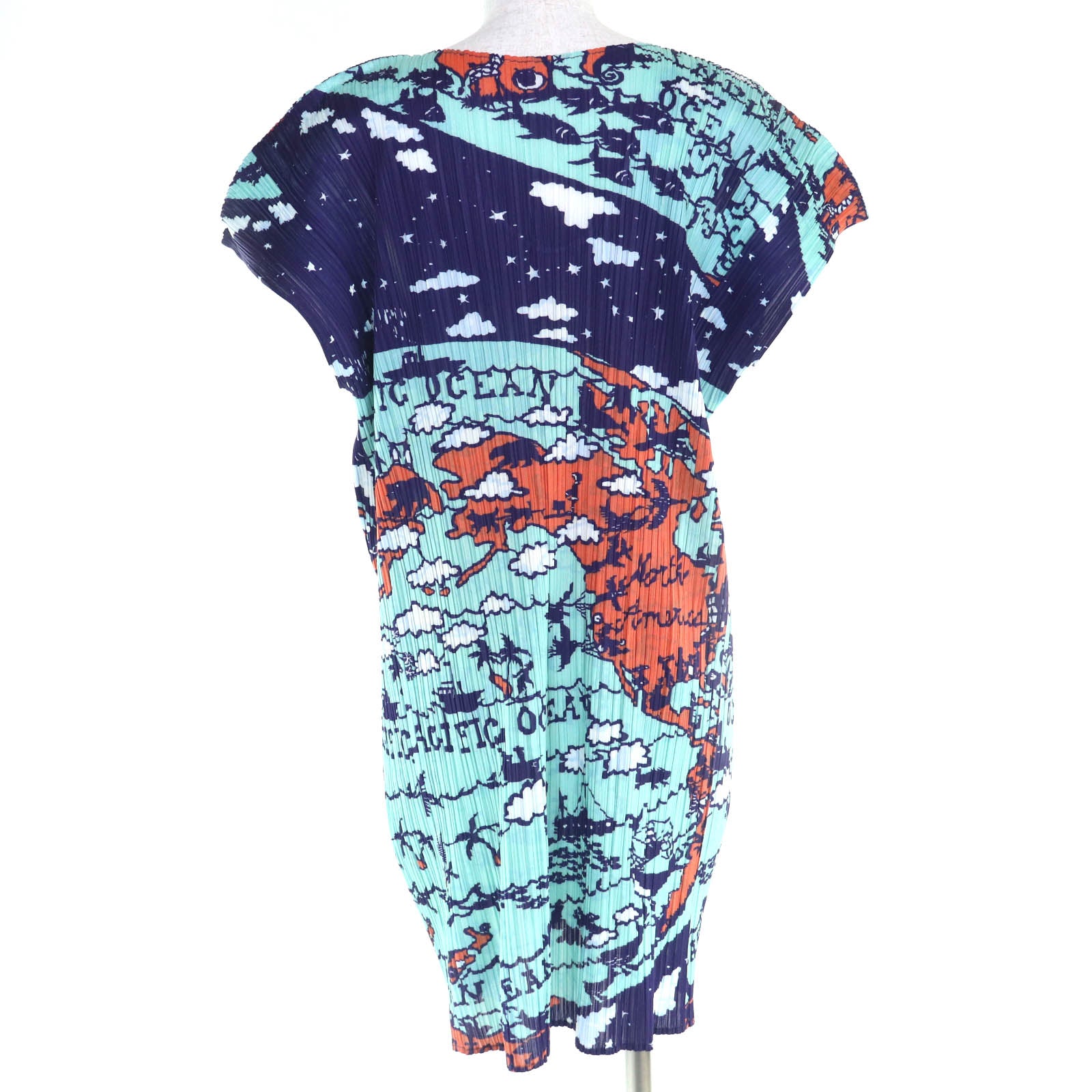 PLEATS PLEASE World Map Ocean Polyester Dress
