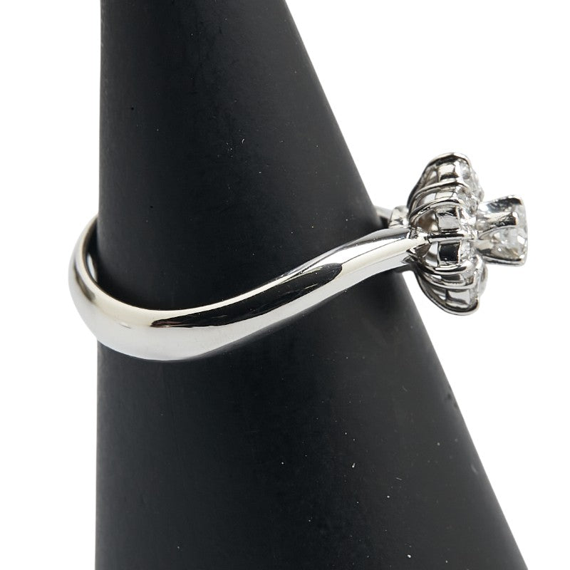 Adorn your finger with this exquisite Pt900 Platinum Flower Motif Ring, a delicate bloom crafted for everyday elegance. The ring features a graceful floral design, subtly enhanced with sparkling diamonds. The main stone adds a touch of brilliance, while the surrounding stones create a captivating shimmer. Lightweight and comfortable for all-day wear, this ring effortlessly transitions from day to night, adding a touch of understated luxury to any outfit. A perfect expression of refined style, this platinum flower ring is designed to be a cherished piece in your jewelry collection.