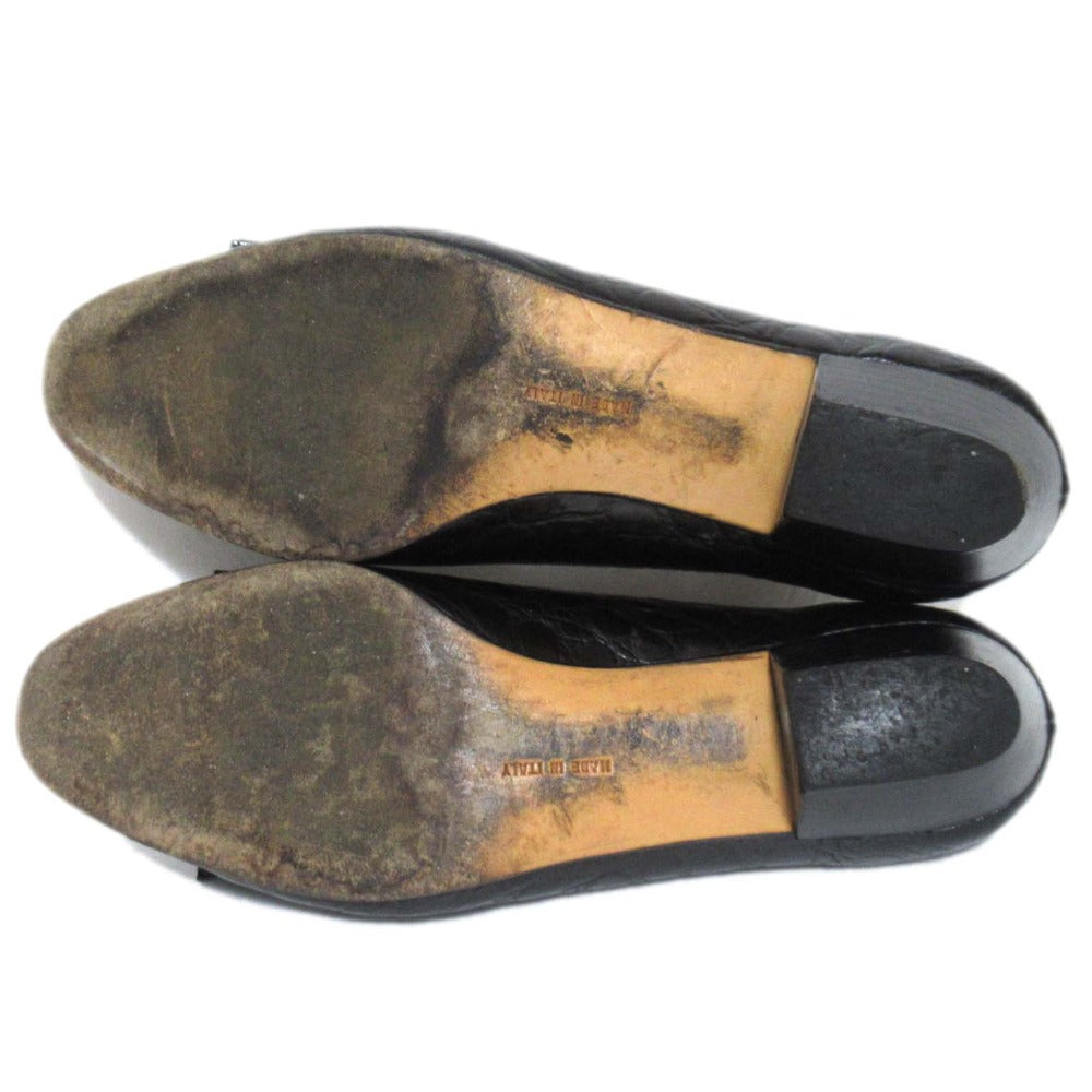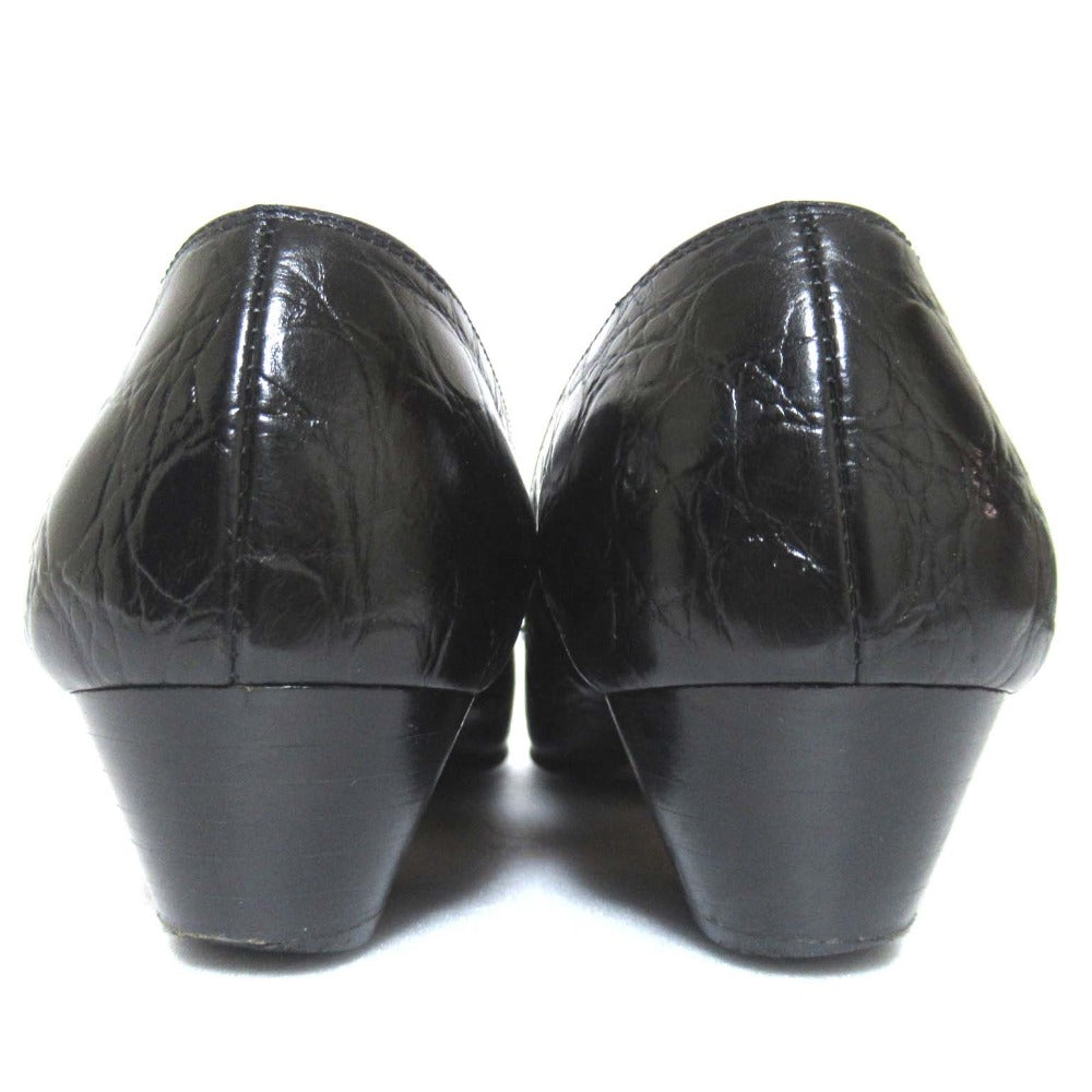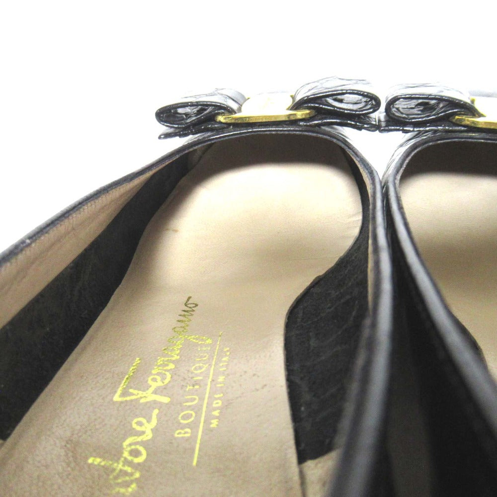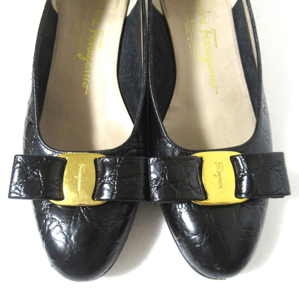 Step into timeless elegance with the Salvatore Ferragamo Vara Croco Embossed Pumps. Crafted with luxurious crocodile-embossed leather, these iconic pumps offer unparalleled comfort and a touch of sophisticated style. Perfect for the discerning woman who appreciates quality and effortless chic, elevating your everyday look with a touch of Ferragamo's signature charm.
